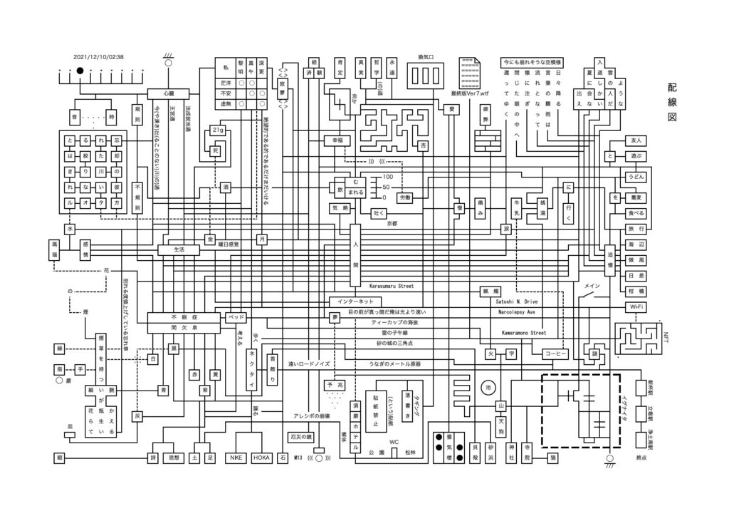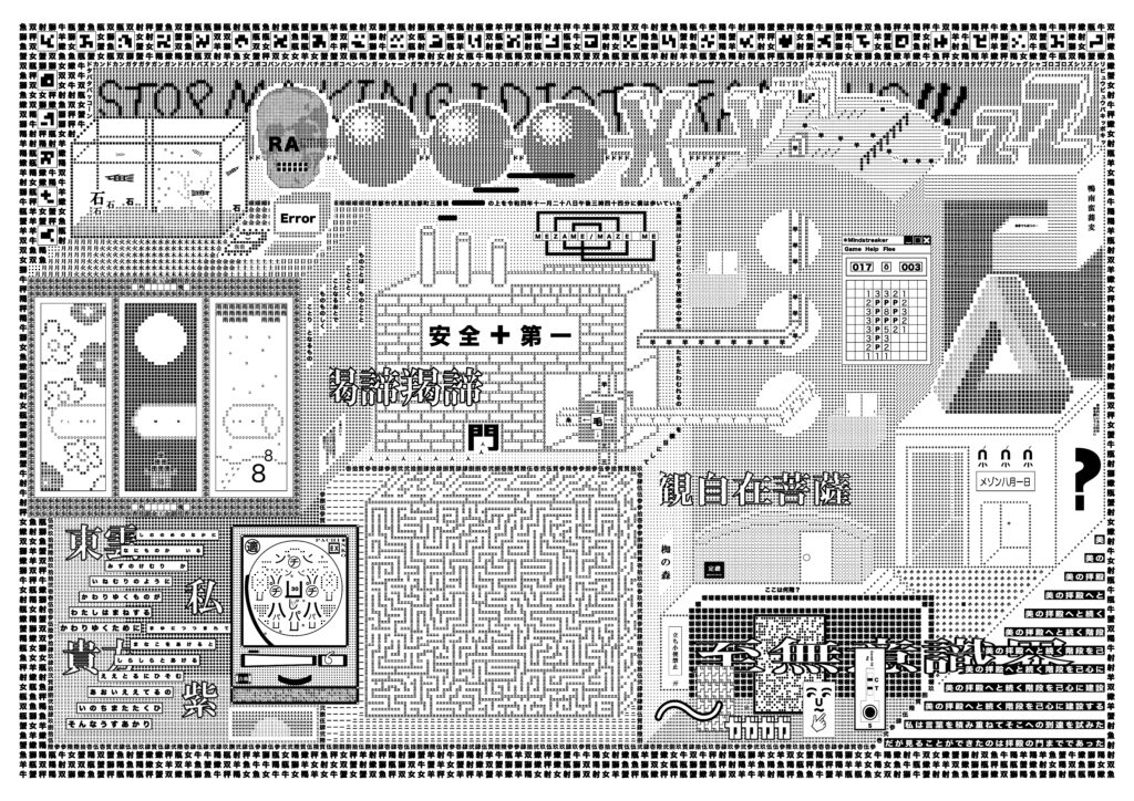 澤村貴弘(さわむら たかひろ)は1992年に京都に生まれ、京都住まい、根っこからの京都人です。作品は数々の作品集や展覧会で紹介されており、とりわけ『東京ポエトリー・ジャーナル』第15号(2024年)「ヴィジュアル・ヴィジョナリー・ポエトリー」に掲載されている。澤村の作品は、日本語と英語の双方において言語的意味と結びついた視覚的パターンを遊戯的に用いる点に特徴がある。日本語の作品には、新国誠一や北園克衛といった先駆者の影響が見られ、20世紀の古典に現代的かつ国際的な感覚を付与している。出版物に『回転木馬』(2019、素潜り旬と佐藤瑞穂・共著)と『Elastic Poems』 (2025)があります。